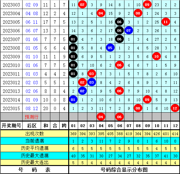 大乐透第2023016期前区号码012路分析