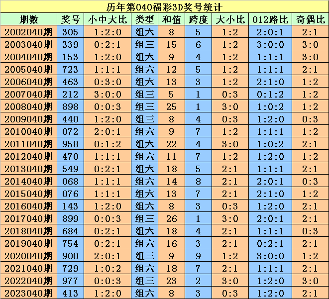 开奖记忆:福彩3D第2023040期奖号为:413。