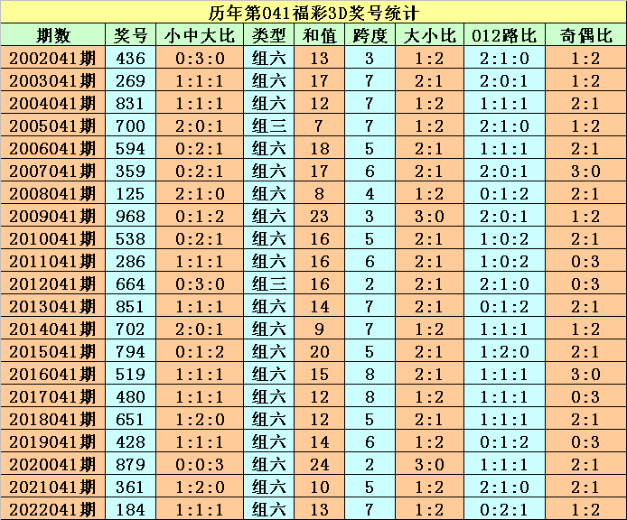 在积年同时开奖中,组三出现2次,组六开出19次,组三轮空10年,本年同时防组三。