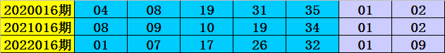 在2020016期-2022016期同周期奖号中,前区连码出现1期,同尾号出现2期,号码奇偶比8:7,大小比7:8,号码012路比1:8:6,前区开出13个号码。